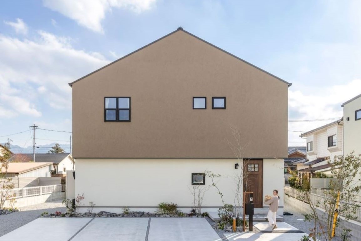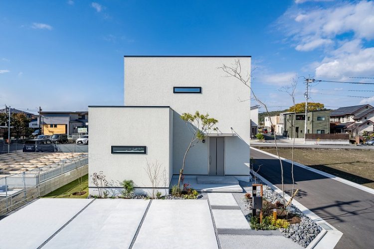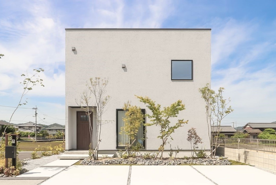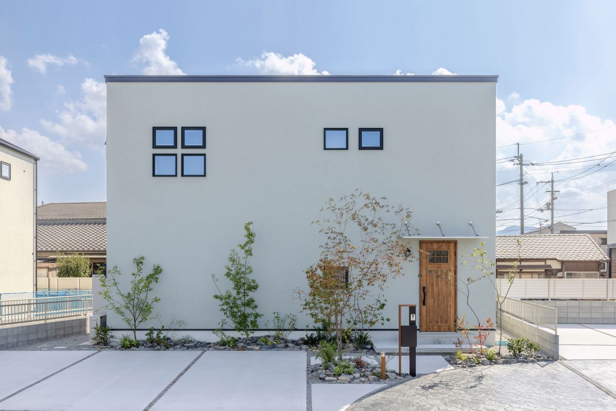 ホワイトの塗り壁がナチュラルモダンな外観。