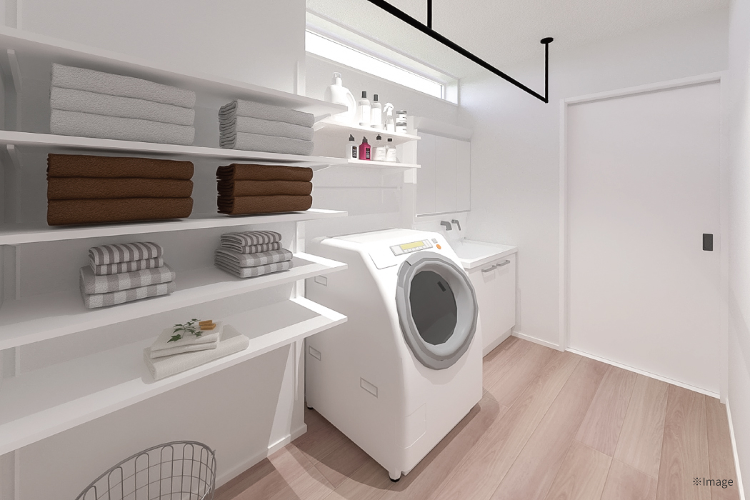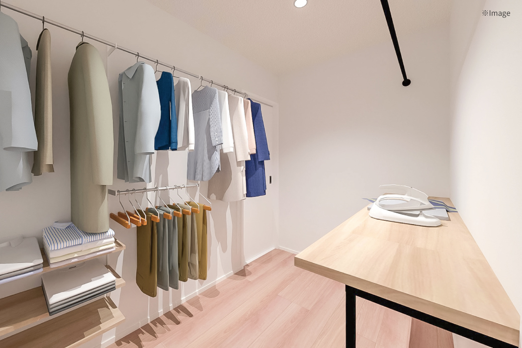 大容量のファミリークロークはランドリー室と隣接しており、洗濯物をスムーズに収納することが出来ます。